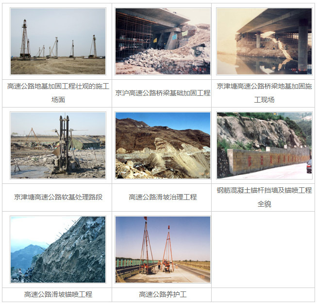 公司擁有多名工程測量、岩土工程、水文地質、環境工程等專業技術人員其中博士1名、研究生1名高級工程師3名、工程師15名、助理工程師10名,擁有先進的儀器設備和勘察、施工技術。勘察方麵,完成多條山區和平原區高速公路工程地質勘察,並在水上、碼頭、采空區、工民建等多領域開展勘察項目。施工方麵,在河北、天津、山東、內蒙、新疆、雲南、陝西、甘肅等省區已完成地基加固、滑坡治理、邊坡防護、橋(qiao)梁(liang)基(ji)礎(chu)加(jia)固(gu)和(he)采(cai)空(kong)區(qu)治(zhi)理(li)等(deng)項(xiang)工(gong)程(cheng),完(wan)成(cheng)多(duo)項(xiang)公(gong)路(lu)橋(qiao)梁(liang)和(he)路(lu)麵(mian)養(yang)護(hu)加(jia)固(gu)工(gong)程(cheng)。我(wo)公(gong)司(si)應(ying)用(yong)的(de)多(duo)項(xiang)地(di)基(ji)處(chu)理(li)和(he)滑(hua)坡(po)治(zhi)理(li)新(xin)技(ji)術(shu)在(zai)河(he)北(bei)省(sheng)高(gao)速(su)公(gong)路(lu)建(jian)設(she)中(zhong)均(jun)為(wei)首(shou)次(ci)應(ying)用(yong),得(de)到(dao)建(jian)設(she)單(dan)位(wei)、施工單位的高度評價,受到河北省交通廳多次表彰,獲得多項省政府科技進步獎。