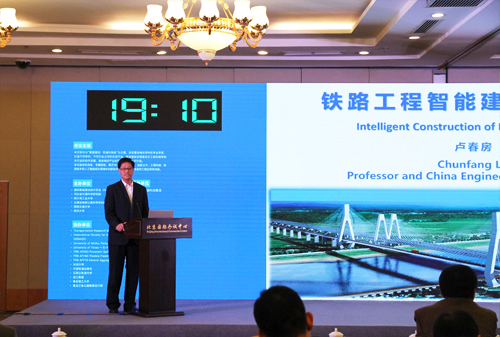 中國工程院院士、中國鐵道學會理事長盧春房做了題為“鐵路工程智能建設技術研究”的主旨報告,報告係統地闡釋了鐵路工程智能建設的應用目標、指標體係和核心技術體係。報告介紹了7大支撐技術體係:鐵路BIM標準體係;基於BIM(+GIS)的設計技術和全生命周期管理體係;泛在智能感知體係;基於移動互聯的智能物聯通信體係;基於雲計算和大數據的全路工程建設智能管理平台體係;基於人工智能、智能機械、機器人的無人化作業體係;基於BIM、PHM的智能運維係統體係。