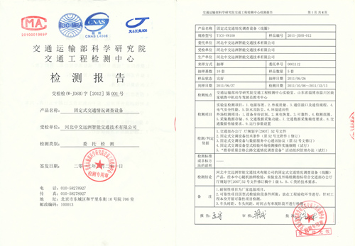 2012年2月,依據《交通部辦公廳廳規劃字【2007】52號》、《‘推薦質量合格公路交通情況調查設備’活動組織管理辦法(試行)》等文件和技術條件要求,在經過交通運輸部科學研究院交通工程檢測中心室內檢測、山東省魯中機動車駕駛員教考中心外場檢測基礎上,中交遠洲智能交通技術有限公司“固定式交通情況調查設備”再次獲得交通運輸部推薦。