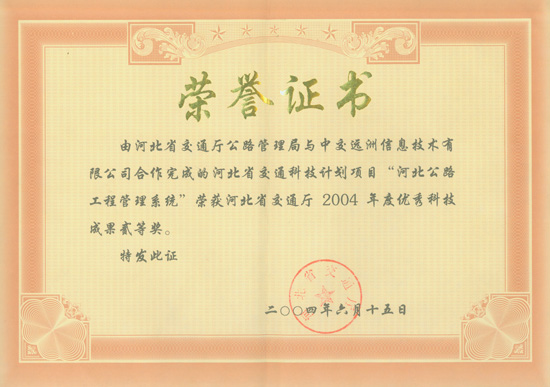河北公路工程管理係統榮譽證