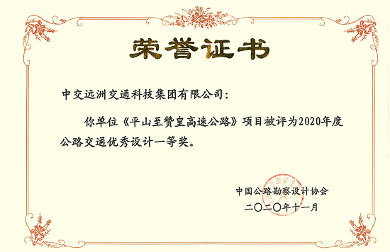 平山至讚皇高速公路項目被評為2020年度公路交通優秀設計一等獎