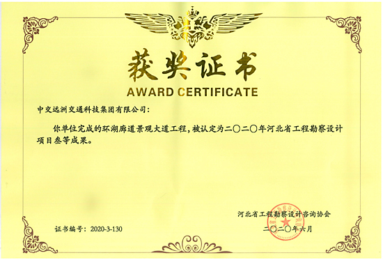 環湖廊道景觀大道工程被認定為2020年河北省工程勘察設計項目叁等成果