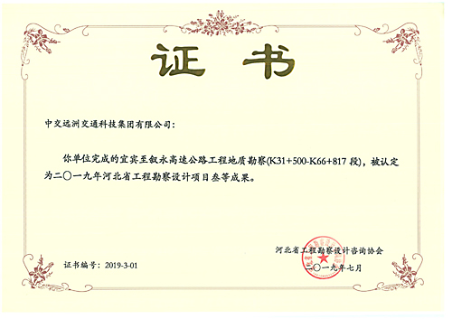 宜賓至敘永高速公路工程地質勘察證書