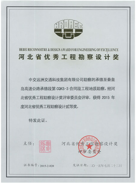 承德至秦皇島高速公路承德段第CQKS-3合同段工程地質勘察二等獎