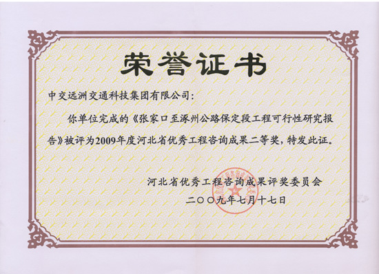 張涿保定段優秀工程谘詢成果二等獎