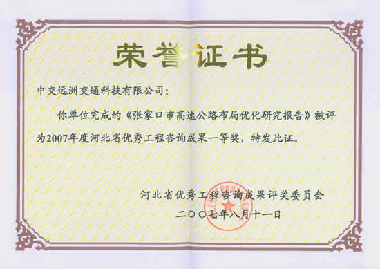 張家口市公路布局優化谘詢成果一等獎