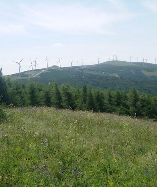 坡頂轉動的風車,散落在草原上的民居,