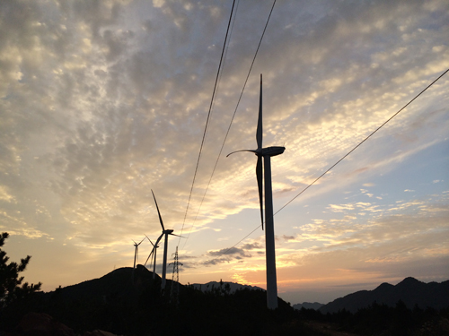 最後,終於還是上到了山頂,看到了風車,也是平生第一次親眼看到風車,在夕陽下,風車排成一列,延伸向遠方。