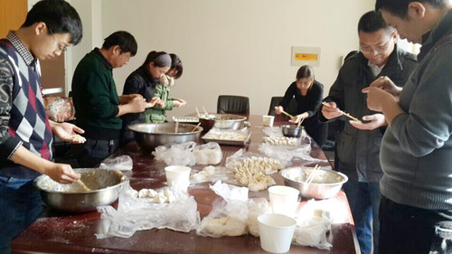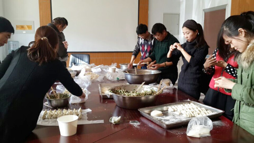 清晨的批發市場又迎來了新的一天,肥瘦勻稱的豬肉、碧綠生青的韭菜、青白鮮美的香蔥、晶瑩剔透的鮮蝦……滿目琳琅間,我采購好今天食堂需要的新鮮食材。剁餡、調料、擀(gan)皮(pi),筋(jin)道(dao)的(de)肉(rou)餡(xian)與(yu)青(qing)香(xiang)的(de)大(da)蔥(cong)碰(peng)擦(ca)出(chu)激(ji)發(fa)味(wei)蕾(lei)奇(qi)妙(miao)感(gan)觸(chu)的(de)火(huo)花(hua),而(er)蝦(xia)的(de)鮮(xian)美(mei)與(yu)蛋(dan)的(de)柔(rou)滑(hua)又(you)孕(yun)育(yu)出(chu)另(ling)一(yi)番(fan)獨(du)特(te)的(de)三(san)鮮(xian)之(zhi)味(wei)。中(zhong)國(guo)人(ren)有(you)過(guo)節(jie)包(bao)餃(jiao)子(zi)的(de)習(xi)俗(su),恰(qia)逢(feng)冬(dong)至(zhi),員(yuan)工(gong)們(men)圍(wei)桌(zhuo)而(er)聚(ju),談(tan)笑(xiao)間(jian),一(yi)個(ge)個(ge)蘊(yun)含(han)著(zhe)祥(xiang)和(he)喜(xi)樂(le)的(de)美(mei)味(wei)冬(dong)餃(jiao)在(zai)手(shou)中(zhong)變(bian)幻(huan)而(er)出(chu)。餃(jiao)子(zi),是(shi)醫(yi)聖(sheng)張(zhang)仲(zhong)景(jing)對(dui)中(zhong)國(guo)美(mei)食(shi)文(wen)化(hua)的(de)絕(jue)妙(miao)饋(kui)贈(zeng),也(ye)是(shi)中(zhong)交(jiao)遠(yuan)洲(zhou)食(shi)堂(tang)在(zai)冬(dong)至(zhi)時(shi)對(dui)員(yuan)工(gong)的(de)愛(ai)與(yu)關(guan)懷(huai)。