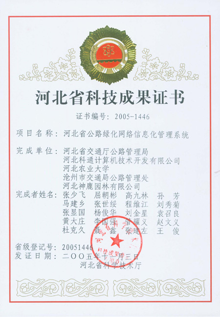 公路綠化信息管理係統科技成果證